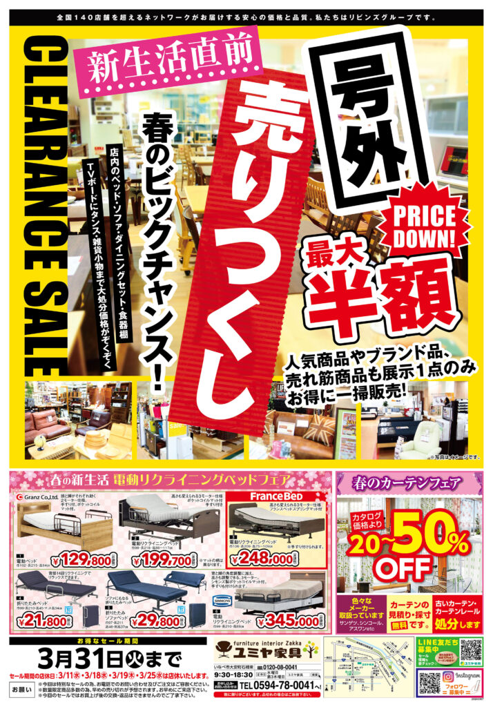 ※セール期間中の3/11(水)、18(水)、19(木)、25(水)は店休日となります。